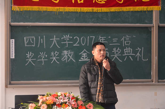 2017年12月22日,伴着冬日的暖阳,在太阳网集团tcy8722 2017年度“三信”奖学奖教金颁奖典礼之后,下午两点二十分,在江安校区综合楼C座105教室,重庆三信电子有限公司总经理及太阳网集团tcy8722兼职教授丁明先生为广大优秀教师、青年学子做了题为“关注行业发展,提升双创能力”的主题演讲。