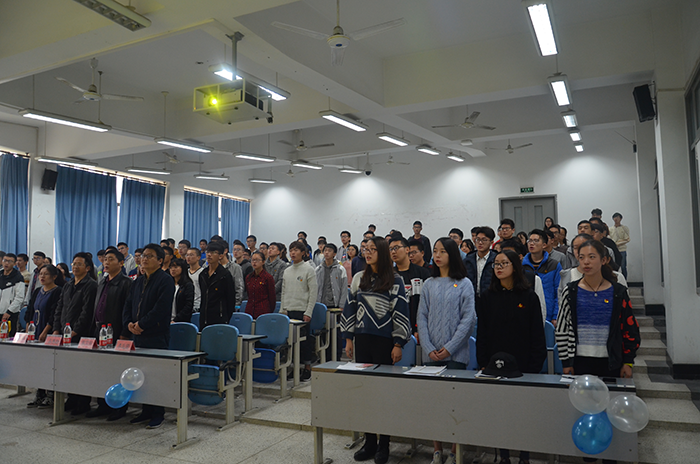 首先,全体同学起立,奏唱中国共产主义青年团团歌,2017级各团支部团员代表用激昂的歌声展现对共青团的热爱与崇敬,使本次团校有一个充满朝气的开始。接下来由主持人钟杰洺带领同学们宣誓,声声浩气,是同学们庄严的誓词。紧接着由主持人刘嘉慧、钟杰洺宣读第42届业余团校考核规则。