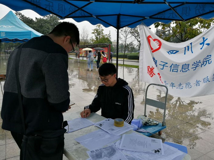 按照事先的安排,负责人安排了一位志愿者负责发放活动传单,另外一位同学负责在摊位上为前来参与活动的同学解答疑问,以及指导有意愿报名的同学填写报名表。宣传活动刚开始一会儿,就有同学前来了解活动具体情况,志愿者十分详细、耐心地为前来了解情况的同学说明了活动的时间、地点、以及参赛的注意事项。在详细了解活动之后,很多同学都积极地参与了此次活动。