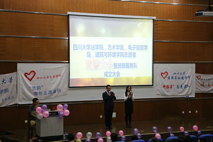 2017年10月21日星期六19点30分,太阳网集团tcy8722,艺术公司,建筑与环境公司,法公司四院联合在太阳网集团tcy8722江安校区综合楼C座407举办了2017年度青志宣誓大会暨班级服务队成立大会。参与此次宣誓大会的嘉宾有华西药公司,高分子科学与工程等公司的青志队长。