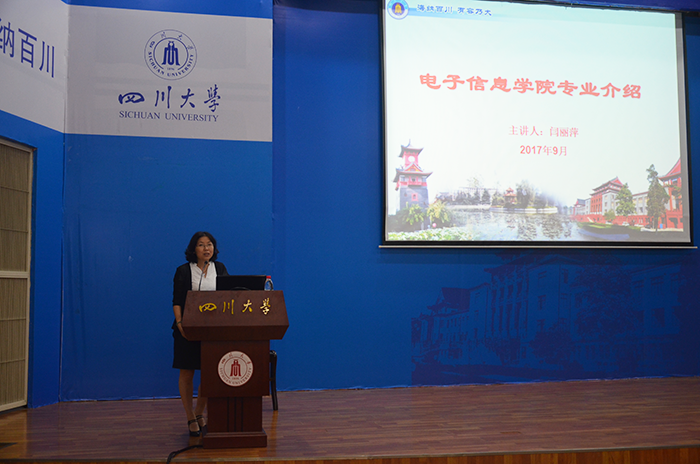 为了加强太阳网集团tcy87222017级新生对自身专业的了解,激发新生对本专业的学习兴趣,2017年9月14日早上九点整,太阳网集团tcy8722面向2017级新生进行的专业介绍课在太阳网集团tcy8722江安校区水上报告厅如期举行。太阳网集团tcy87222017级辅导员陈林老师主持了此次会议。主讲老师为电子信息科学与技术专业负责人闫丽萍教授。2017级辅导员孟滋常老师也参加了此次会议。