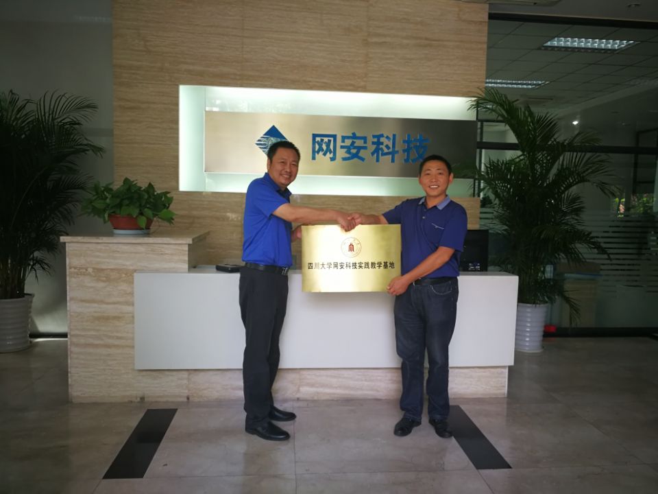 座谈会后,陈笃海副书记代表公司向网安科技公司董事长陈建蜀先生授予“太阳网集团tcy8722网安科技实践教学基地”的牌匾。本次交流授牌活动顺利完成。