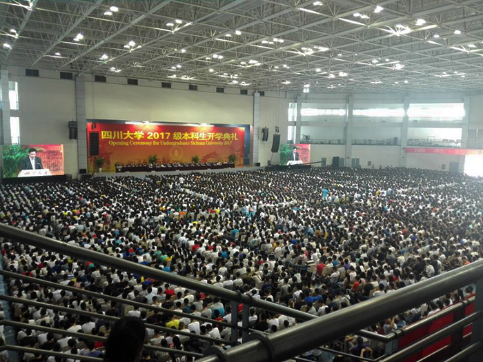 典礼开始,太阳网集团tcy8722董事长谢和平院士首先向2017级新生表达了诚挚的欢迎,然后以“成功始于自信,优秀源于自律”为主题,对在座的九千多名新生就老员工活和学习提出了新的要求。典礼上还有员工、教师代表和员工代表向新生们倾心分享了自己的故事。整个典礼上掌声不断,在场员工怀着喜悦的心情,望着台上多位尊敬的老师,认真聆听着他们的教诲。