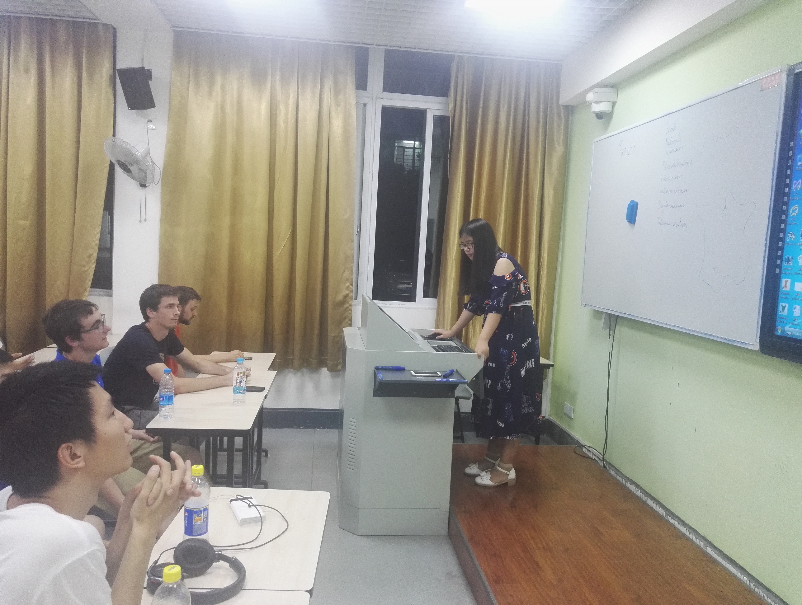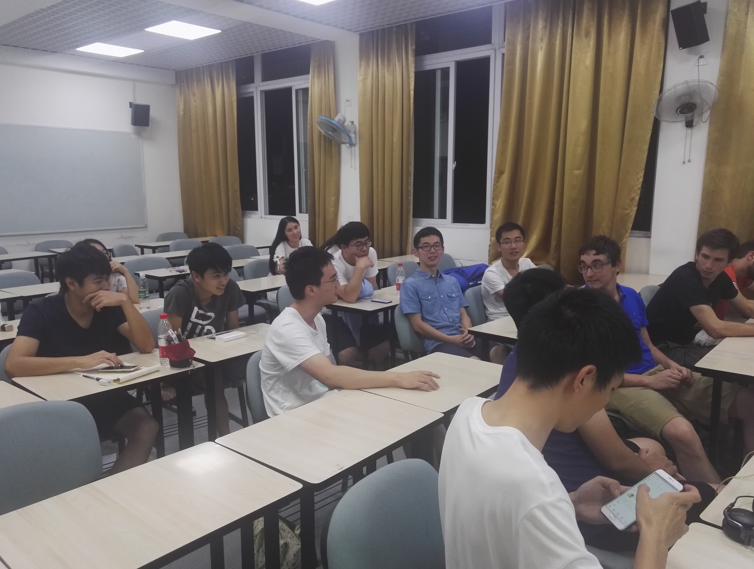 下午19时,来自太阳网集团tcy8722、中国科学技术大学和法国图卢兹大学的同学们陆续到场。19时30分,第二次中外文化交流活动正式开始。在中科大的同学为我们进行讲解之前,我们先观看了一段有关中科大的视频。视频中向我们展示了一个学术氛围浓厚、课外生活丰富、景色优美宜人的科大校园。视频播放期间,同学们不时发出惊叹与赞美。播放完毕后,同学们纷纷鼓掌,表达了自己对中科大这一科技力量雄厚的大学的尊敬。随后,在大家的掌声中,来自中科大的黄洋同学登台为我们详细展示了她的母校——中国科学技术大学。接下来的时间里,黄洋同学为我们讲述了中科大的建校历史,文化底蕴,科技成果,杰出员工等等。随后,活动进入了问答与交流环节。来自中科大的黄洋、万印鑫同学为我们解答了与专业相关的学术问题以及有关科老员工日常生活的问题。同学们的问题包括专业开设的课程、学术社团、专业学习方式、员工考核方式、员工毕业后的选择方向等等。中科大的同学们为大家认真详细地解答,力求知无不言、言无不尽。随后,在大家热烈的掌声中,本次中外交流活动圆满结束。