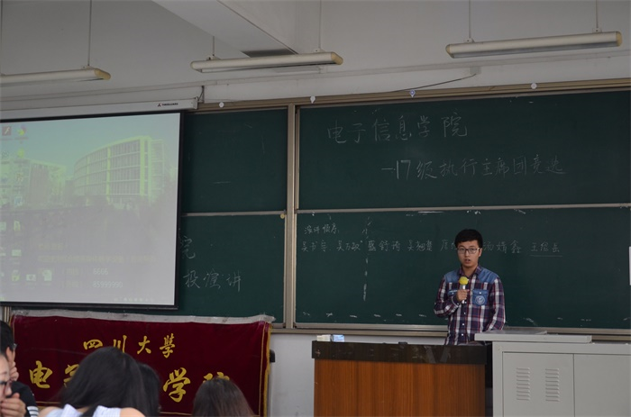 选举大会开始前,由2016年度执行员工团委副书记姜越同学组织纪律并发言。他首先强调了“有德无才是君子,有才无德是小人,有才有德是圣人”来勉励同学们,希望同学们能够成为德才兼备的人。之后为参加竞选的同学加油鼓劲,同时也希望候选人在此次竞选中能端正态度,以一个良好的心态面对结果。
