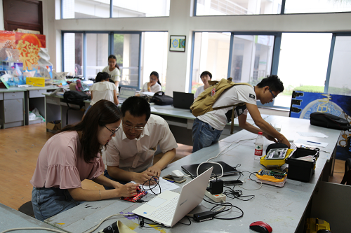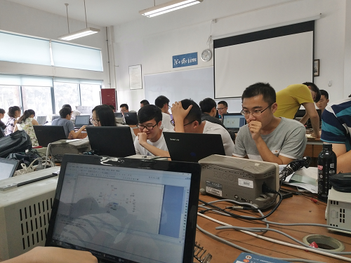 本次选拔赛于2017年5月13日上午8点在望江校区创新实验室正式拉开帷幕,望江校区的选拔测试是面向大三员工,并在下午一点在江安校区创新实验室进行另外一场面向大二员工的选拔测试。从比赛开始到结束评委们忙碌了整整一天,为每一个参加比赛的同学认真分析,测试电路,答疑解惑。比赛赛场同学们或是认真思考,或是查阅资料,或是焊制电路板,或是与老师交流,秩序井然。下午7点左右整个选拔赛落下了帷幕,评委们一起离开了比赛赛场,并且边走边谈论着比赛的情况。参加比赛的同学,简单的整理设备,清洁赛场后也陆续离开,选拔赛完美结束。