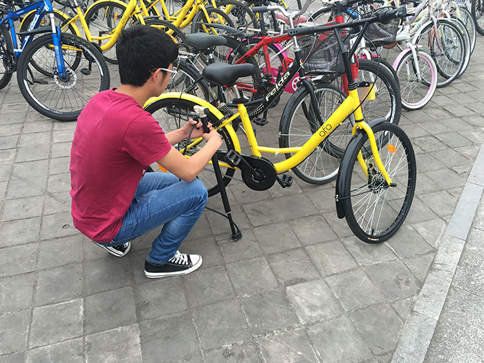 本次活动主要内容为给轮胎气压不足的ofo共享单车打气并标识出损坏的单车,以此方便同学并且帮助维修人员寻找损坏的单车。在活动开始后,志愿者们便按照事先规划好的路线开始进行,志愿者们从青春广场出发,走过白石桥,进而路过文科楼以及综合楼,再走到图书馆和二基楼,最后走过长桥以对围合前的共享单车进行检查。志愿者们认真检查沿途所遇到的共享单车,并且对不同情况的共享单车采取了不同的处理办法。