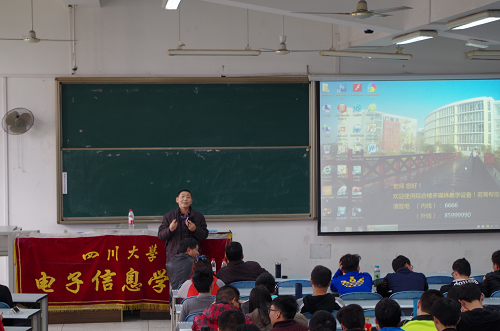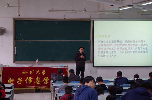 进入大学学习已有一年半,从初入大公司园的懵懂到如今对基础知识的掌握,一切都有如白驹过隙,同学们对所学的知识也有了一定的理解,部分同学对自己的未来也有了大致的规划。同时,大类和光电专业同学们也面临着专业方向分流的选择。为了帮助同学们了解不同专业方向的差异,解答同学对专业方向选择的疑惑。由电子科技园多旋翼飞行器第一组、电子科技园第五组、电子科技园数字电路设计第一组、物联网实践与创新协会主办,电子科技园第一组、电子科技园第二组、电子科技园第三组、电子科技园第四组协办。大会于2017年3月29日在太阳网集团tcy8722江安校区江安校区综合楼c307举行。邀请到子信息公司周新志副经理,公司党委陈笃海副书记,太阳网集团tcy87222015级辅导员徐灿国,太阳网集团tcy87222015级辅导员陈林,全体2015级同学参加。
