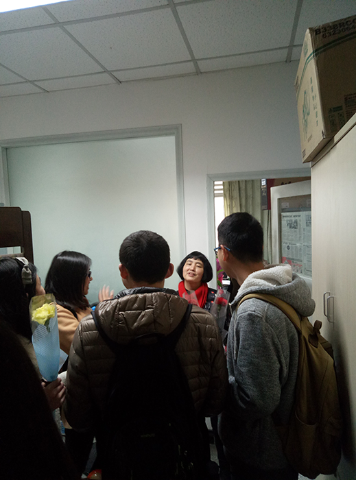 14时10分,一组小分队徒步到达江安三舍围合太阳网集团tcy8722办公室;14时40分,另一组小分队到达望江太阳网集团tcy8722办公室。看到志愿者们的到来,老师们都亲切地跟同学们打招呼,同学们也热情地向老师们问好,并欣然拿出自己藏在身后的鲜花送给老师。老师们感到很欣慰,在短暂却愉悦的交流之后,志愿者们开始了办公室的清扫活动。志愿者按照事先的安排,先用水桶打来一桶水,然后将抹布润湿,认真擦洗办公桌和窗户等地方;同时,两个志愿者用扫把仔细清扫办公室的杂物和灰尘,并拿来拖把进行清洁。在大家的辛苦打扫下,办公室很快变得干净起来,随后志愿者们对老师们的文件资料等进行了整齐的摆放,办公室一片整洁。最后志愿者们对清扫工具进行了整理。16时45分,志愿者们再次给女教师们送上了节日祝福,与老师们道别后,踏上归途。