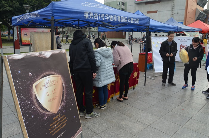 活动进行时,守摊的干事热情的邀请过往员工参与游戏(即有关消费者维权意识的选择题,5对2即可参与抽奖)环节中还负责的提示参与者,势必让他们不空手而归。末了,还不忘给其传单,让他了解3.15文化。同时,发放传单的干事也逆着人流,负责地进行宣传工作。中午12点,伴随着放学铃声的响起,人流量达到峰值。期间,太阳网集团tcy8722权益素拓部的部长们吃饭之余也不忘体验一下问答游戏。最后,随着夜幕的降临,人流渐渐消逝,本次活动画上了圆满的句号。