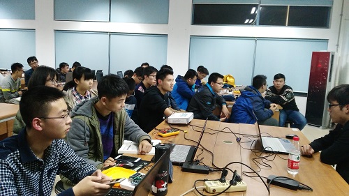 19点20分,会议准时开始。首先,主持人简单的介绍了活动的流程,然后便进入了本次活动的最关键环节,分小组进行交流讨论,动手操作,把理论化为实践,此过程中,主办人员会协助解决讨论中遇到的一系列疑难问题。现场气氛浓厚,讨论热烈。同学们争相发表自己的见解,对于同一个问题提出多种不同的解决方案,真可谓是条条大路通罗马,殊途同归。在与不同专业院系的同龄人进行交流的过程中,同学们不仅扩展了自己的知识面,开拓了视野,也交到了脾气相投,兴趣相同的好朋友。热热烈烈的讨论结束后,主持人将收集到的典型问题和优秀成果进行展示,并请相关同学进行现场讲解,相信这些值得学习和借鉴的例子会让同学们受益匪浅。9点整,会议在主持人精彩的总结中结束,同学们有序的退场。个别仍有疑惑的同学则继续留下来向主办人员请教问题,主办人员也热情耐心的他们解疑。