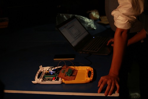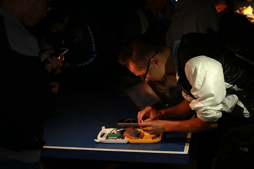 当晚8:00,电子科技园技术部的十二位部长和被考核的干事准时到达了三八广场,第一次考核工作准时开始。此次考核的内容为每个干事按照原理图焊接一个51单片机最小系统并编程,将学号后八位从十进制转化为二进制,并以LED流水灯的形式显示出来。为提高工作效率,十二位部长分成了四组,对干事进行分组考核。大家围在三八广场的乒乓球台上,干事们拿出制作好的系统等待考核。部长依次检查了干事们焊接的电路,检查LED灯是否能正常工作。部长们对已完成任务的干事提出表扬和鼓励,并对LED灯未正常亮起来的干事进行了耐心的技术指导和经验交流,帮助他们分析原因并解决问题,并且让他们拿回去继续做,等待下次考核。由于是第一次独立制作最小系统,对于很多干事来说比较困难。聂承源部长说:“应该至少投入20%的时间到单片机上,否则难以入门。”这给部分干事增加了不小的心理压力与负担。本次考核的成绩将作为科技园优秀干事评选的重要依据,所以大家都十分重视并认真完成。