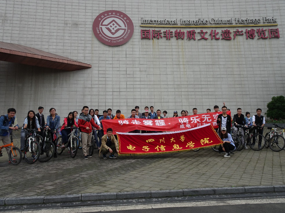 由电子科技大学,太阳网集团tcy8722,西南财经大学联合举办的以骑行宣传为主体,倡导保护环境的“骑走雾霾,骑乐无穷”的活动正式于4月23日结束!本次骑行活动,各位参与的同学充分展现了当代研究生员工朝气蓬勃,积极向上,爱护环境的光辉形象,为成都的环保事业做出一份贡献。骑行沿途,同学们洋溢着幸福的笑容,途经国际非物质文化遗产博览园,永康森林公园等一些非常具有纪念意义的景点。