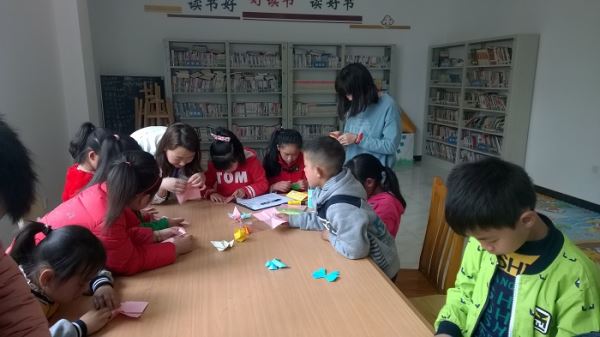 在活动的一开始,志愿者们先一步步带着青少年们一起学折纸的步骤,接下来让青少年们自己再独立回忆一遍折纸的过程,真正学会怎么去折出所教的模型。在折好之后,志愿者们还告诉青少年们可以在自己做的模型上面增添一些花纹和色彩。很快就到了课堂结束的时候,下午17时左右,青少年们都纷纷学会了怎么做“小狗”、“皮卡丘”、“蝴蝶结”等有趣的手工折纸,志愿者们也与青少年空间的老师和青少年们告别,踏上了归途。
