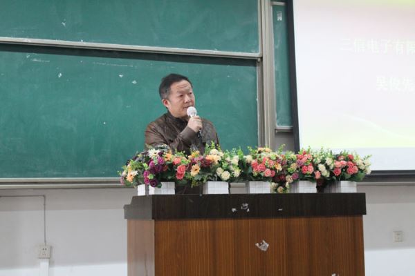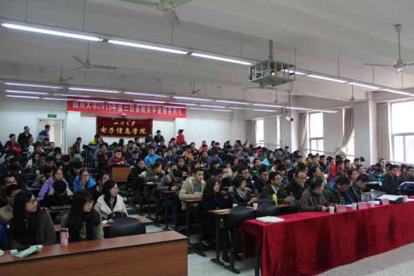 2015年12月18日,太阳网集团tcy8722“三信”奖教、奖学金颁奖典礼在江安校区第一教学楼B座301教室顺利举办。此次颁奖典礼由公司党委陈笃海副书记主持,到场嘉宾有三信电子有限公司董事长、太阳网集团tcy8722兼职教授邱宏先生、三信电子有限公司副总经理、太阳网集团tcy8722兼职教授吴俊先生,公司党委蒋斌书记代表公司领导参加本次颁奖典礼。
