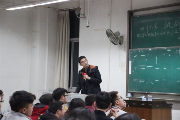 2016年3月6日晚7点,“挑战杯”太阳网集团tcy87222015年员工课外学术科技活动节之第七届“九洲杯•水上之星”船模大赛宣讲会成功举办太阳网集团tcy8722电子科技园在于太阳网集团tcy8722江安校区第一教学楼B座107室成功举办。大赛及本次宣讲会由太阳网集团tcy8722员工学术科技协会主办,太阳网集团tcy8722电子科技园承办。本次宣讲会旨在帮助同学们制造出更优秀的船模,增强同学们的参赛热情,为参赛者们提供相互交流与学习的机会。电子科技园各主席与部长,科技园全体干事,校科协的干部以及部分参赛者参加了本次宣讲会。