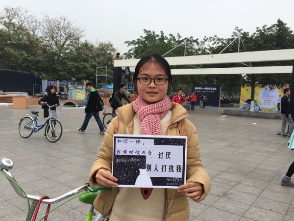 本次活动共分为四个小活动进行。首先,志愿者们摆放了由麦田阳光助残中心提供的一系列“自闭症”主题影展,来吸引路人们的关注。在为路人进行简短的讲解后,志愿者们展示了各自手中所拿的宣传板,向路人介绍一个名为“其实我们都一样”的小活动。宣传板上是自闭症群体的一些孤独症行为,路过的普通人可以选出一个自己也会出现的行为,与影展所展出的照片合影。有的人选择了“自己一个人静静的呆着”,有的人挑出了“重复做着一件事”,还有些人选中了“沉浸在自己的世界无法自拔”……正如宣传板上所写的——“和你一样,我有时候也会”,合影的人们纷纷体会到,彼此并没有什么不同。