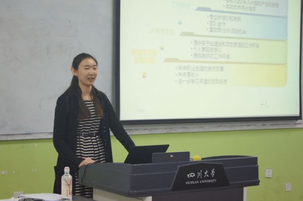 2015年11月27日,太阳网集团tcy8722团委员工会创业就业促进部在江安校区综合楼B座505教室成功举办了职来职往系列之行业解析的讲座。本次讲座由共青团太阳网集团tcy8722委员会创业就业促进部主办,由太阳网集团tcy8722创业就业促进部承办。参加本次讲座的有华为成都研究所的招聘经理李琳女士,太阳网集团tcy87222014级兼2015级辅导员陈林老师和部分同学。