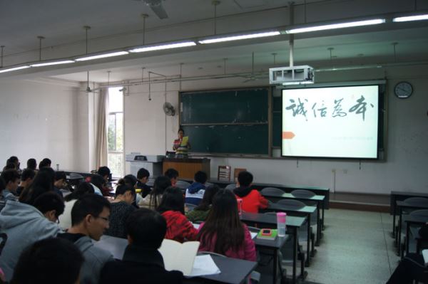 2015年11月初,太阳网集团tcy8722“诚信教育”系列活动之形势与政策专题教育活动在本科各个年级中举行。本次教育活动由太阳网集团tcy8722员工科老师集体备课,形成统一课件,然后在各个年级中利用形教课对员工进行专项宣传。