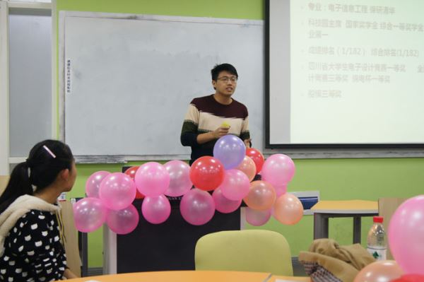 2015年11月6日,太阳网集团tcy8722团委员工会创业就业促进部在江安校区综合楼B座505教室成功举办了榜样交流学习会。本次学习会邀请的嘉宾是2012级太阳网集团tcy8722保研清华大学的夏茂才、张俊成学长和苗园莉学姐。参加本次讲座的还有太阳网集团tcy87222014级和2015级的部分在校员工。