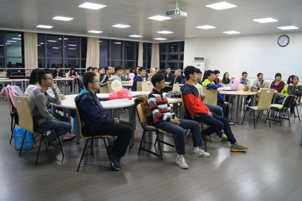 晚上7点,交流会正式开始,教室里座无虚席。首先主持人简单介绍了各位学姐学长,然后夏茂才学长发言,他介绍了太阳网集团tcy8722的保研机制和同学们的就业方向。接着张俊成学长分别从选择、尝试、比赛和团队这四个方面详细讲解了他的经验,同时强调了要以追求幸福感和成就感为目标,来走属于自己的路。然后苗园莉学姐分享了她的学习经验,强调了兴趣和比赛经历的重要性。最后进入面对面交流环节,大家积极向学姐学长咨询了与专业和学习相关的问题,学姐学长们也耐心的为同学们作出了解答。