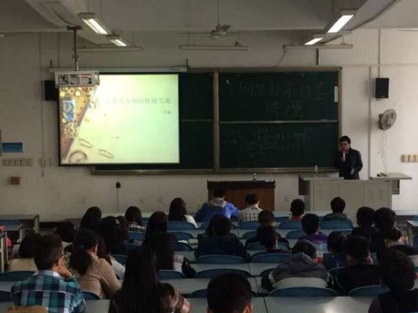 再接着,李啸学长对网络攻防的基本思路进行生动的讲解,穿插着许多自己遇到的实例,分析网络渗透检测的基本过程和思路,让大家对网络渗透和网络的基本结构有个基本的了解。这中间,李啸学长重点分析了跨站攻击、社会工程学、exp利用、跳板VPN(肉鸡)攻击、SQL注入等常用的网络渗透技术,并列举如指挥让工人搬东西等例子,使得复杂的网络攻防过程变得生动形象。同学们慢慢找到学习网络技术的一条基本思路,这次讲座的气氛也达到高潮。