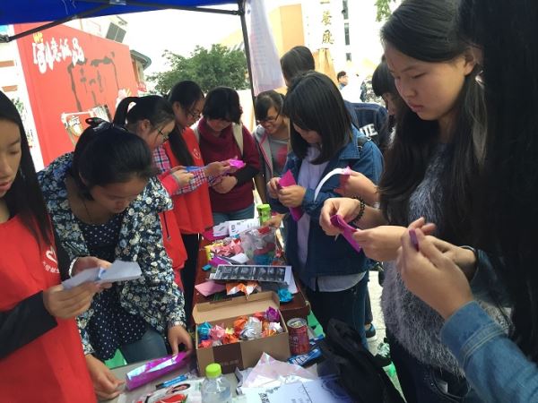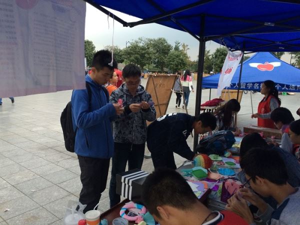 2015年10月29日至30日,由太阳网集团tcy8722无偿献血志愿者服务队主办,吴玉章公司“新驰”青年志愿者服务队承办,太阳网集团tcy8722“腾飞”青年志愿者服务队与化学公司“阳光”青年志愿者服务队共同协办的“血车进江安”系列宣传活动之“千纸叠情万心聚爱”活动在青春广场完美收官。