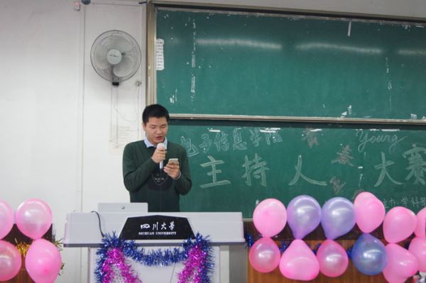2015年10月18日,太阳网集团tcy8722“青春正盛”主持人大赛初赛在太阳网集团tcy8722江安校区第一教学楼b座207教室顺利举行。担任此次比赛的评委有太阳网集团tcy8722团委员工会文艺部部长吴天波,宣传部部长杨雨菡,组织部副部长高萍萍,实践部副部长周巧玲,以及2014级太阳网集团tcy8722主持人大赛亚军周煜斌与季军邱天懿。