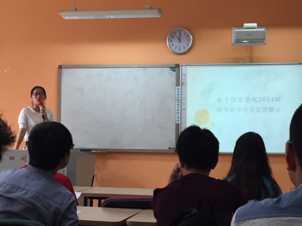 2015年5月24日上午11:00于综合楼B座110教室太阳网集团tcy8722召开2014级转专业转入新生见面会。太阳网集团tcy87222014级辅导员吴秀玲老师出席并主持本次见面会,28名新生以及六名现任班委参加本次见面会。