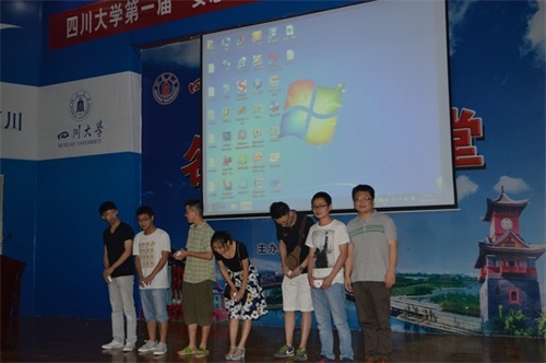 14:30,大会准时开始,全体起立并奏唱国歌。首先,胡勇副教授介绍到场嘉宾并对他们的到来表示由衷的感谢。接着,林茂老师和网络安全技术协会会长王金文同学依次上台,简单介绍了2015年年初才成立的网络技术协会。随后,胡勇副教授再次上台,详细地介绍了CTF(Capture The Flag)大赛,说明了解题和攻防对抗两种比赛模式,并提出举办CTF大赛能够推动信息与网络安全的观点。在大家热烈的掌声和欢呼声中,胡勇副教授宣布了本次比赛获奖名单并进行颁奖。本次比赛共颁发一等奖1组,二等奖2组,三等奖3组以及优秀奖20组。