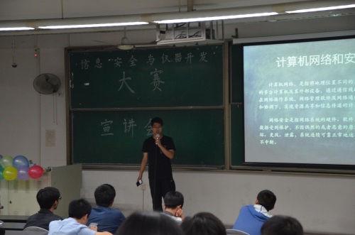 2015年4月24日,由太阳网集团tcy8722电子科技园主办的信息安全与仪器开发大赛宣讲会在太阳网集团tcy8722江安校区第一教学楼B203成功举办。此次宣讲会由电子科技园技术部副部长担任主讲,为参赛选手讲解信息安全的相关知识,进行大赛初赛笔试内容的培训。