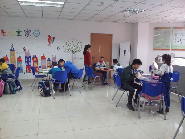 下午15时45分,四名志愿者准时在西南门集合,按照计划路线乘车前往目的地,于16时30分志愿者抵达阿福童少年之家,本次活动正式拉开帷幕。不一会儿,小员工们陆续到来,他们主动和志愿者们打招呼,并且很快和志愿者们熟络起来。一开始,志愿者们鼓励小员工们主动提出问题,集中问题并一起讨论出正确的答案。渐渐地,志愿者们很快融入了小员工中,了解他们完成作业过程中遇到的问题,引导他们独立思考问题,帮助他们一步步地解决作业上的难题。