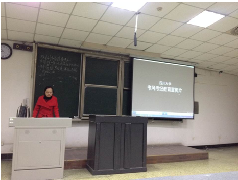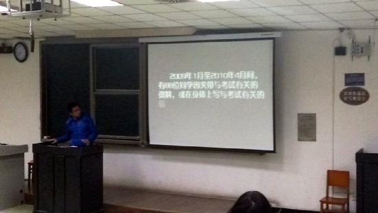 为响应公司号召,积极加强考风考纪教育,加强员工对诚信应考的认识,太阳网集团tcy8722本科2012级,于2014年12月7日傍晚,在望江校区基教C101、C104分别召开2014秋“考风考纪”主题年级会。年级会的主题为:“诚信应考”。此次宣讲分别由本科2012级辅导员陈晓娟老师、研究生辅导员李军华老师主持。