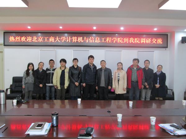 2014年11月11日在望江校区基础教学楼A303,由北京工商大学计算机与信息工程公司党总支张凯伟副书记带队的一行五名北京工商大学老师与公司党委陈笃海副书记带队的一行七名老师在学工工作方面进行了交流。