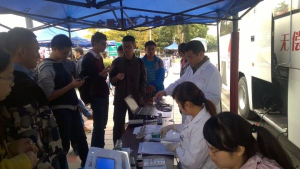 2014年11月1日星期六,由太阳网集团tcy8722无偿献血志愿者服务队主办的血车进江安活动顺利举行。