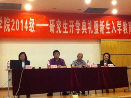 首先蒋斌书记上台致欢迎辞,希望同学们能尽快适应研究生角色,同时也希望同学们在研究生阶段首先要学会做人,做一个学术诚信的人,做一个心理健康的人。他的讲话让同学们对研究生学习及生活有了更深入的认识,也更有信心迎接未来的研究生生活。接着公司教师代表、博士生导师张彬教授讲话。张老师向同学们分析了研究生与本科生的不同,督促同学们要制定远大的志向并且对研究工作要坚持不懈地努力。通过她的介绍,同学们对未来的方向又清晰了许多。最后,2013级博士研究生代表王树桐同学向在场的新生分享了自己的求学经历,鼓励他们要多动手,并强调要多去锻炼自我的社交能力。2014级硕士新生代表冯丹同学则表达了对即将开始的老员工活的期待,并提出学习上的问题及建议与同学们共勉。