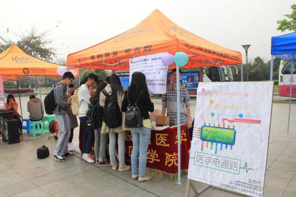 本次活动共持续了一天,人群熙攘的摊位前是两院工作人员忙碌的身影。工作人员为现场参与者针对活动内容进行了耐心的讲解,本次活动主要由抽电路图、找元件、答题以及领取奖品四部分组成,电路连接完成后,所答题目主要包括生活中的各项医学常识。活动过程中,不时看到参与者皱眉思考和拿到奖品时激动欣喜的表情,使在场的同学们充分感受到本次活动所传达的趣味性。并且,本次活动中,工作人员能将每一步的人员分工都安排明确,极大促进了活动井然有序的开展。
