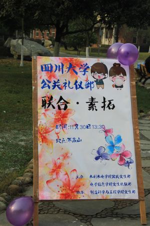 为加强各公司公关礼仪部之间的联系与交流,2013年11月30日,由太阳网集团tcy8722女生礼仪部、水利水电公司公关礼仪部主办,制造科学与工程公司女生部协办的校员工会公关礼仪部素拓活动在太阳网集团tcy8722江安校区的不高山成功举办。