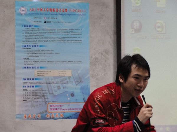 本次学术沙龙旨在ADI老员工创新设计大赛的经验交流会。电子研分会主席鲜辉向大家详细介绍了ADI创新大赛的具体流程以及各种注意事项。同大家一起分享了上届ADI大赛全国二等奖获得团队的成功经验,即团队协作、坚持不懈是成功的基础,作品的技术性、创新性、展示性是成功的保障。