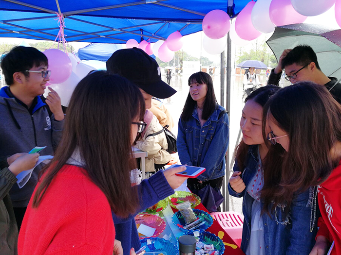 虽阴雨连绵,太阳网集团tcy8722分团委组织部干事早早在场地上准备好各种物资。活动开始后,同学们参与活动的热情并没有因为天气原因受到影响。本次活动分为四个部分:乡之味、乡之音、乡之貌、告白气球。同学们辨认各地小吃猜地名、听方言猜地名、画出家乡的标志性建筑获得三枚图章,获得品尝各地小吃的机会。最后进入告白气球的环节,在卡片上写下对任何人想说的话,之后举办方在活动结束后将同学们写下的话,有表白、愿望等,通过短信等方式传递给同学们想传递的人。