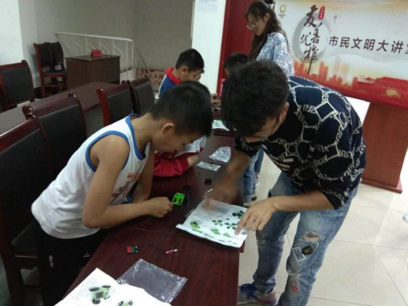 此次活动中,志愿者和小朋友们都在愉快的组装过程中锻炼了自己的动手能力。组装电子小手工,更激发了小朋友们对电子的兴趣,使小朋友们更加期待接下来的活动。