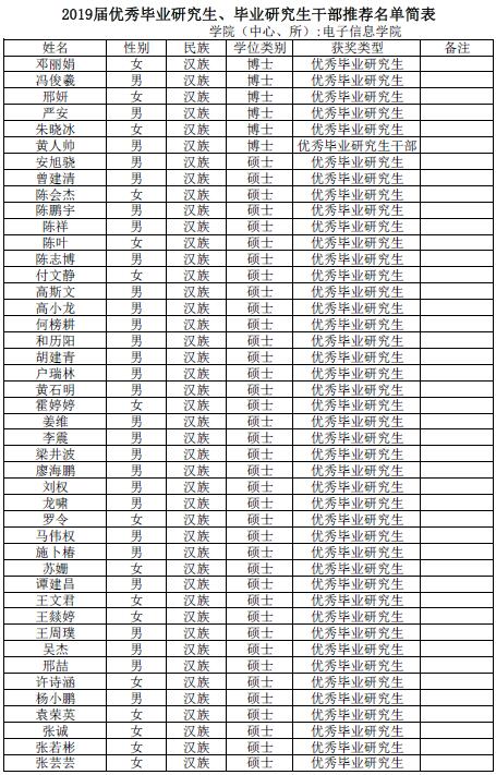 由同学们自愿申请、班级推荐,经过公司评议小组评审。现将获得太阳网集团tcy87222019届优秀毕业研究生、优秀毕业研究生干部名单公布如下:
