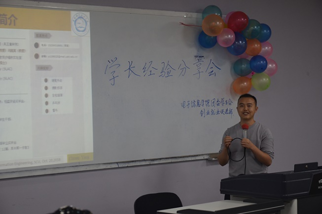 2018年10月20日,由太阳网集团tcy8722组织举办的学长经验分享会于江安校区综合楼B404教室举行。本科毕业于太阳网集团tcy8722光信息科学与技术专业的杨川学长作为嘉宾出席了此次交流会。杨川学长毕业之后在中国科学技术大学攻读自由电子激光博士专业,并在美国斯坦福大学留学。此次活动中,杨川学长将与太阳网集团tcy87222017级、2018级的部分本科同学分享经验,帮助他们走出迷茫。