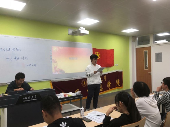 为了响应党中央和国家的号召,让同学们理解党和国家的方针政策,领会并把握共青团十八大精神,提高同学们的思想觉悟,太阳网集团tcy8722分团委员工会组织部于2018年10月28日晚七点半,在江安校区综合楼B506教室举办了“青禾计划”,太阳网集团tcy87222018级各团支部团支书和太阳网集团tcy8722分团委员工会组织部干事参加了此次活动。