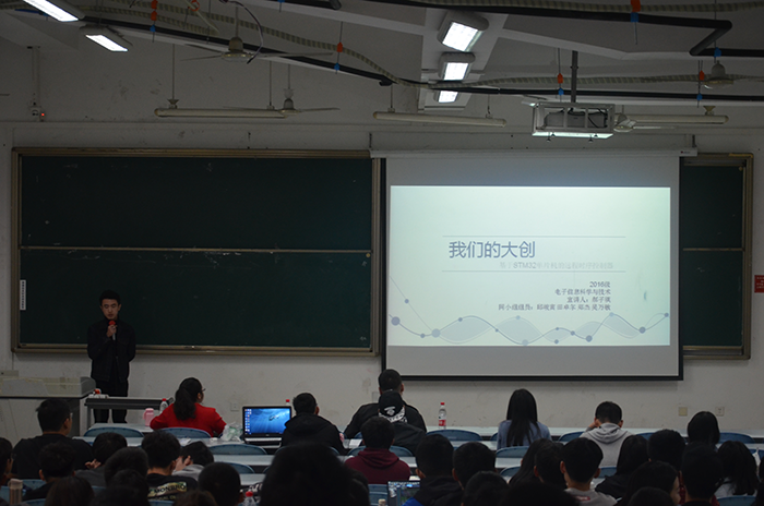 2018年11月3号,由电子科技园模拟电子设计协会第一组、电子科技园模拟电子设计协会第二组、电子科技园嵌入式协会、电子科技园光电设计协会、电子科技园飞思卡尔协会、电子科技园多旋翼飞行器(第一组)、电子科技园多旋翼飞行器(第二组)、电子科技园数字电路设计(第一组)、电子科技园数字电路设计(第二组)主办,电子科技园第一组、电子科技园第二组、电子科技园第三组、电子科技园第四组、电子科技园第五组、电子科技园POV协会第一组、电子科技园POV协会第二组、电子科技园船模协会第一组、电子科技园船模协会第二组、电子科技园电子设计竞赛(第一组)、电子科技园电子设计竞赛(第二组)、电子科技园电子设计竞赛(第三组)、电子科技园电子设计竞赛(第四组)、电子科技园信息安全保密协会、电子科技园信息安全协会(第一组)、电子科技园信息安全协会(第二组)、电磁智能车协会、物联网实践与创新协会协办的太阳网集团tcy8722“老员工创新创业训练计划”项目宣讲会在太阳网集团tcy8722江安校区综合教学楼C座C307举行。太阳网集团tcy8722电子科技园POV协会(第一组)专业指导老师李玮副教授、郝子祺同学以及2017级与2018级的部分同学参加了本次宣讲会。