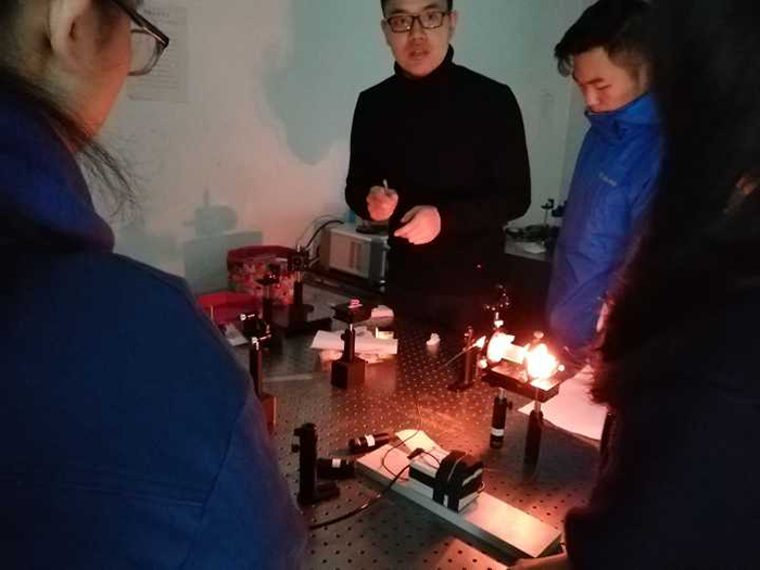 上午九点,2017级的同学们来到了望江校区。在负责本次活动的研究生学长的带领下,同学们来到了张蓉竹教授的实验室。由于同学们已经不是第一次来到这个实验室了,学长在简单地提了一下注意事项之后,便开始了此次的实验讲解。本次的实验目的是研究光的矩孔衍射和衍射特点,因为类似的实验同学们在高中时代都已经接触过了,所以,在学长简单介绍了实验原理和仪器使用方法后,同学们就开始了今天的实验。同学们虽然有过类似的实验经历,但却没有用过这么精密的仪器,真正实践起来才发现和自己之前的实验有着很大的不同。在研究生学长的帮助下,同学们还是出色地完成了实验任务,成功看到了矩孔衍射的光斑,并记录了衍射数据。至此,今天的实验圆满结束。