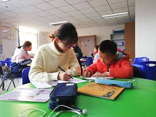 在前往服务中心的路途中,志愿者们内心不仅有要给小朋友们辅导功课的激动,还有如何教会孩子们的担忧。但一进入服务中心,小朋友们热情的招呼马上就平定了他们复杂的心情。小朋友们准备已久的学习问题立刻就让志愿者投入到了辅导活动中。随后不一会儿,其他小朋友也纷纷到来,活动室里充满着志愿者们答疑解惑的声音。在志愿者的帮助下,小朋友们解决了他们学习中遇到的种种问题,同时志愿者也在答疑解惑的过程中帮助小朋友们构建知识体系,教给他们正确并且高效的学习方法,让小朋友们受益匪浅。