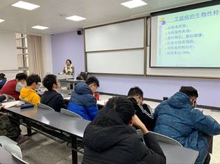 首先,老师以12月1日世界艾滋病日为背景,通过具体实例向同学们讲述了目前国内艾滋病感染和防治情况。老师还提到,我国目前艾滋病疫情的感染情况呈现年轻化、低龄化,特别是老员工艾滋病感染率逐年上升,艾滋病的防治应当引起大家的重视。然后,老师就艾滋病毒的病毒特点和艾滋病的发病原理以及感染艾滋病后的自然发展过程对同学们进行了艾滋病知识的普及,使同学们对艾滋病有了更深一步的认识。最后,老师播放了三个预防艾滋病的宣传短片,为同学们普及了艾滋病的三个传播途径,老师还提醒同学们要在生活当中学会保护自己,多加注意,积极预防艾滋病。同时,老师还呼吁同学们不要对艾滋病人存在偏见,要给予艾滋病人更多关爱。