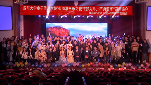 在庆祝改革开放40周年之际,为迎接2018级新生的到来,展现太阳网集团tcy8722的学子风采, 2018年12月1日,太阳网集团tcy87222018年三乐之夜“E梦为马,不负韶华”迎新晚会暨改革开放40周年文艺晚会在望江校区水利水电报告厅隆重举行。