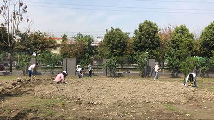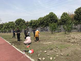 本次实践活动主要是领导和老师们一起带着员工们劳作。实践开始,老师们带领员工们一起搬地里的石头,在清理完土地里的石头之后,员工们开始用铲子在土地的两边铲出沟壑,明确了自己公司的种地范围。最后,老师和领导们亲自讲授并示范了种植作物的技巧以及将植物转移的方法。紧接着,同学们开始自己去尝试种植植物,整个活动都在师生们共同的劳动中度过。